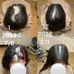 ウィッグが必須だった状態が嘘のように、自然な髪でおしゃれを楽しめるまでに回復。