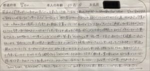 オーナーのカウンセリングでは、自分自身を向き合う事が出来、初めて出会った方なのに、オーナーの言葉は私でも抜毛症が克服できるのでは?と勇気と希望と励ましを頂きました。